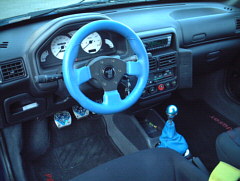 Sportlenkrad Blau, Blaue Alupedale, Schaltknauf, Sportsitz Sparco, 4 Punkte H-Gurt, Tachoscheibe Weiss |