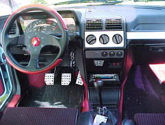 Momo-Sportlenkrad und Schalthebel, Alu-Pedale, silberne Armaturen-Abdeckung, Clifford-Alarmanlage mit Funkfernbedienung, Nici-Nilpferd, Schutzpatron St. Christophorus. |