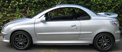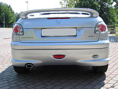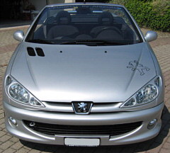 Rundumlackierung (Spiegel, Leisten, Lufthutze), Scheinwerferabdeckung vorne, Klarsichtleuchten hinten, Überrollbügel Musketier, Heckspoiler Airstream, Frontspoiler mit Schnauze, Antenne silber kurz Gutmann, Original Chrom-Ventildeckel (wurden aber bereits geklaut), Peugeot-Löwe-Kleber auf Motorhaube und Rückscheibe, Schriftzüge am Heck entfernt. |